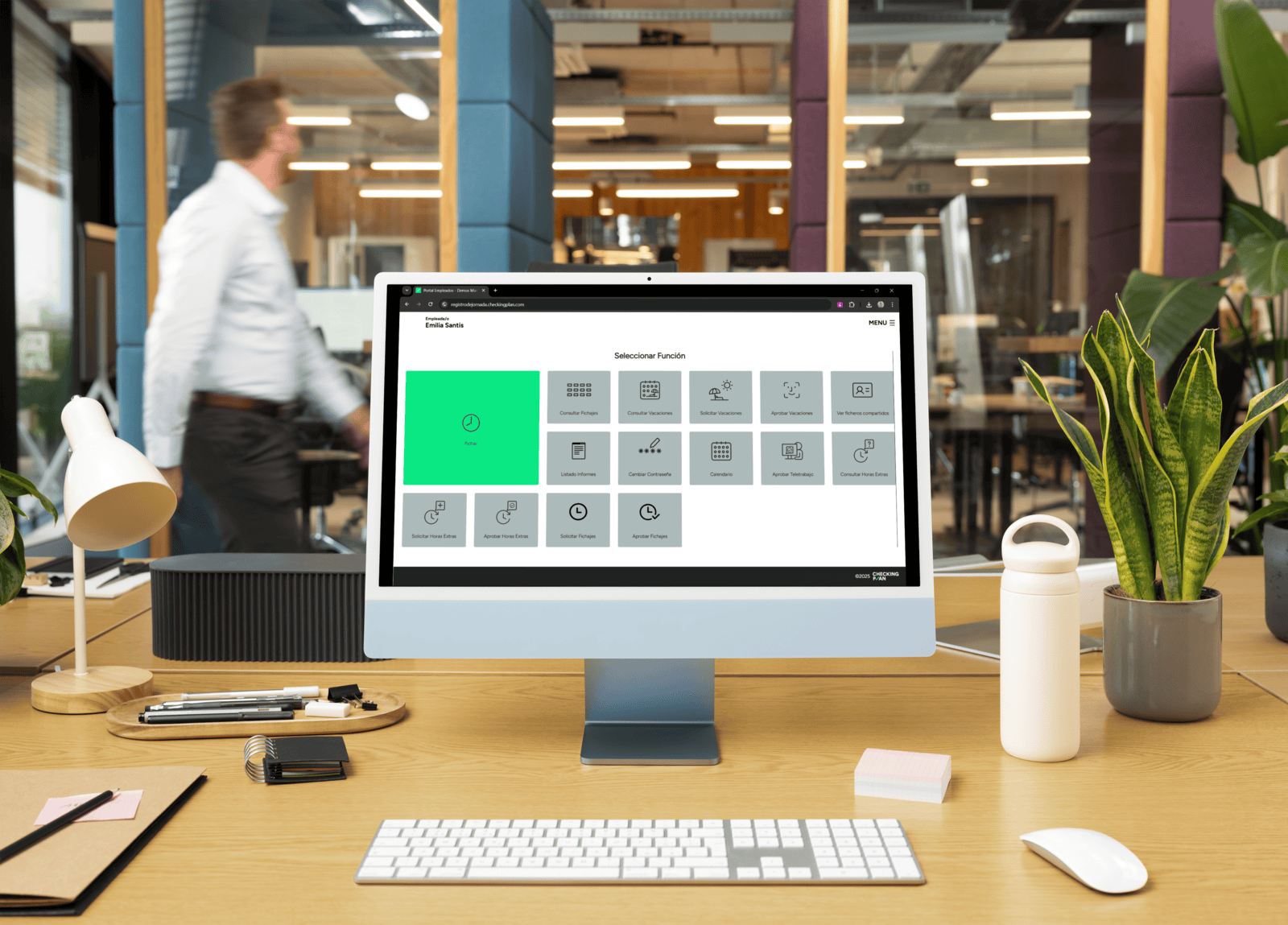 Tu equipo registra sus entradas y salidas directamente desde el navegador del ordenador.
